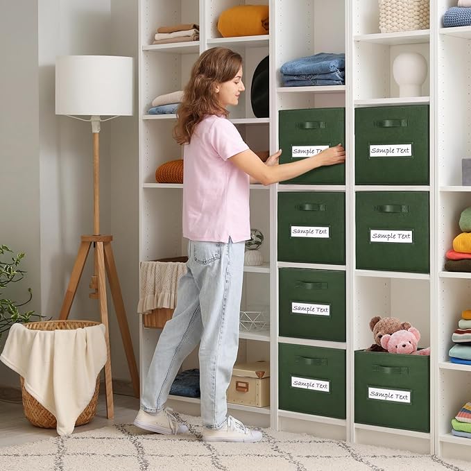 artsdi 13x13x13 storage cube bins (Set of 10) Fabric storage cubes with 10 Labels Window Cards & a Pen, storage cubes 13x13, Collapsible 13 inch cube storage bins, Cubby Organizer Boxes, Dark Green