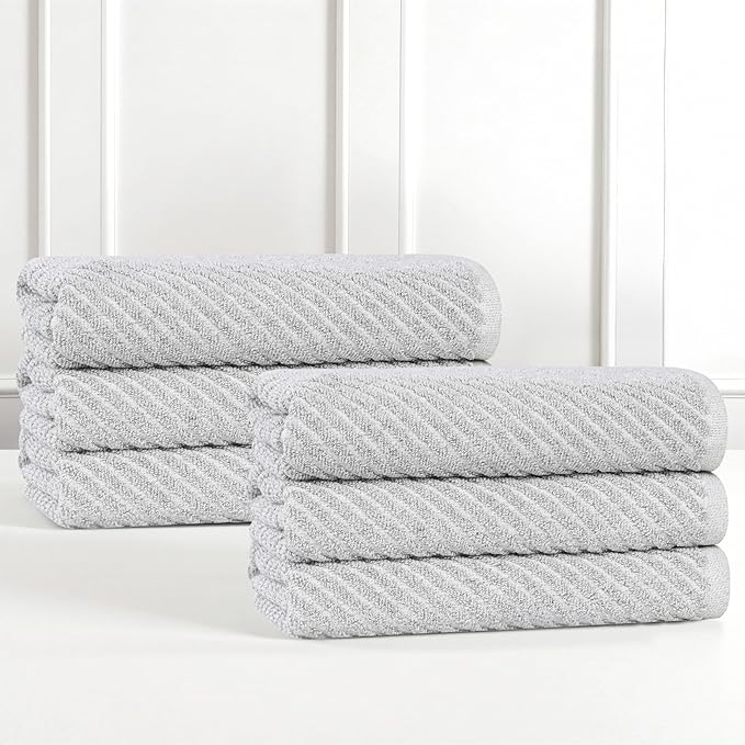 Superior Amelia Viscose Cotton Blend Medium Weight Towels, Kitchen, Bathroom, Shower, Plush, Quick Dry, Ultra-Soft Towels, Bath Essentials, Ribbed Design, Absorbent Hand Towels, Set of 6, Platinum