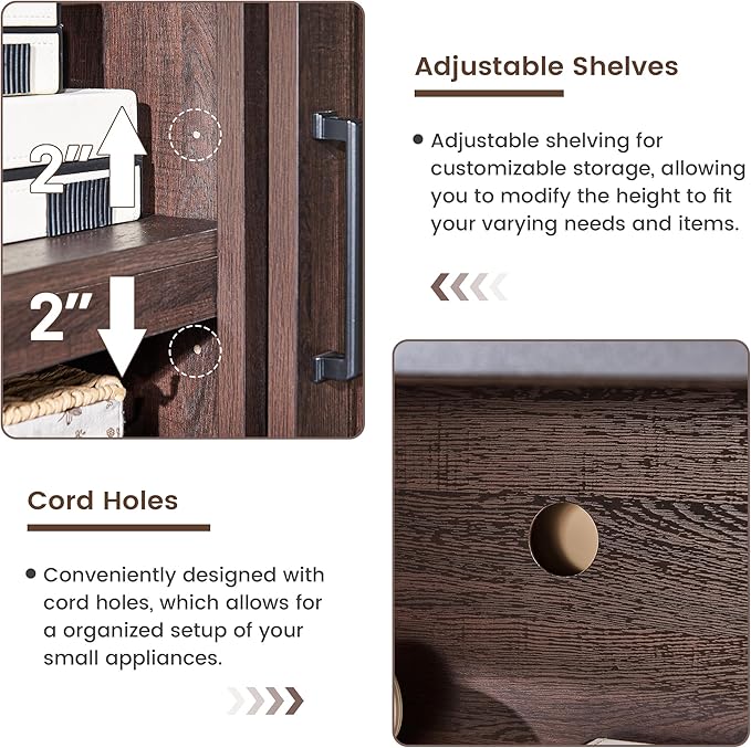 - Special Feature : Adjustable Shelf, Sliding Barn Door Design