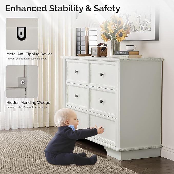 - 【Modern Dresser Chest】 Distressed whitewashed painting finish, carved drawer fronts, arch pillar design, artistic corbel-style legs and decorative crown moulding add a touch of elegance and classic flair to the design, making the chests versatile, capable of complementing various bedroom decor styles, from coastal, shabby and cottage chic to farmhouse and boho, etc.