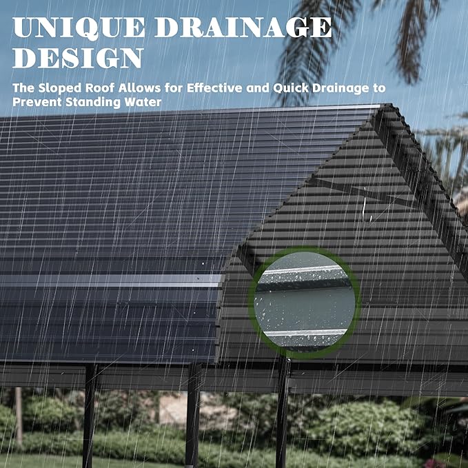 - Easy Installation Design: In terms of installation, our metal carports have optimized the design of the assembly method through hands-on practice. Now our product parts come with pre-drilled holes and sliding connection components. Of course, they are also equipped with professional product assembly instructions. You only need to follow the step-by-step instructions in the instructions.