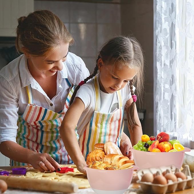 - EASY TO STORE:They nest nicely within one another for easy storing,so they don't take up much room in the cupboard.In a room with limited space, an apartment, a dormitory, or an RV, the bowls and the lids can also be hung separately for storage.