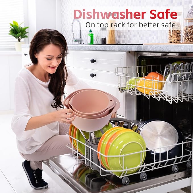 - DISHWASHER SAFE: These mixing bowl set with lid and spout are dishwasher safe. The plastic bowl is very durable,unbreakable.The bowl's design is elegant and classic, matching any kitchen decor.A must-have for a new house!