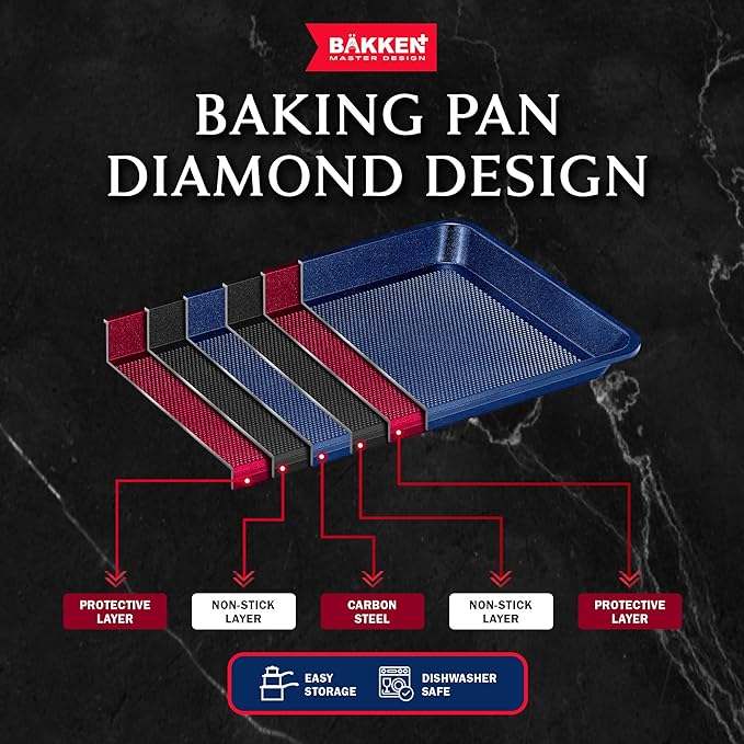 - DURABLE CONSTRUCTION: Made with commercial-grade carbon steel, these cookie pans ensure even heat distribution for perfect baking without warping. The nonstick blue coating makes food easy to release and cleanup a breeze.