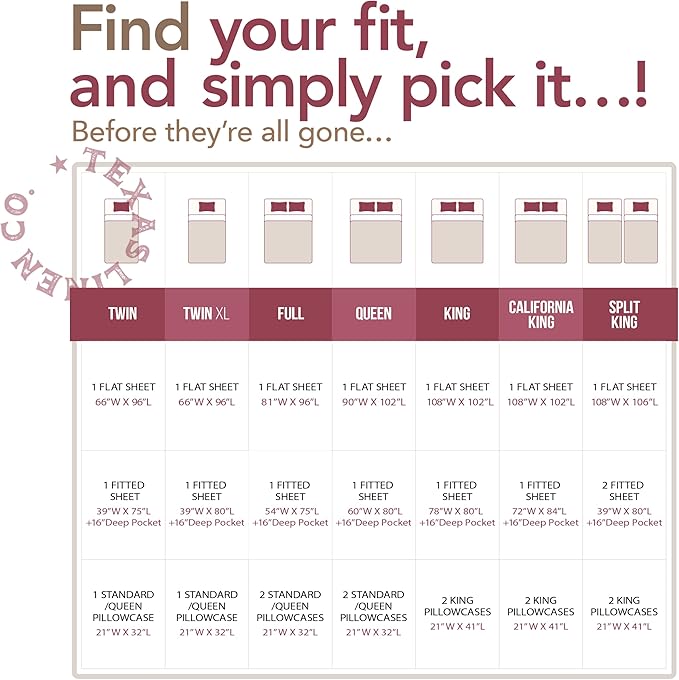 - Flexible 30-Day Refund/Return Policy: Try our 100% pure & organic cotton california king sheet sets, and if you don’t like them, you can always get the items exchanged/refunded within 30 days on Amazon. Our hotel collection sheets are a popular gift choice pack on Christmas, Valentine’s Day, Mother’s & Father’s Day. Pick the color you like and match it with our 800 thread count solid bottom sheet, top sheet, duvet cover, pillowcase, and comforter from Texas Linen’s home decor collection.