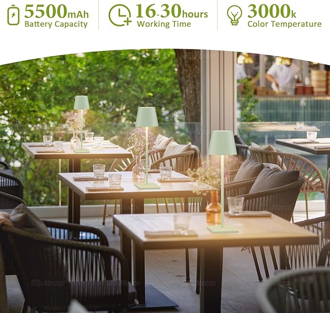 - 【Aluminum Metal Table Lamp】 High capacity battery, Type-C charging port, 5-6 hours of charging, 16-30 hours of use; Power 3W; Input voltage: 3.7V; High quality metal aluminum + acrylic lampshade; Size 4.37LxH 15.2 inches; Push button switch control; IP65 waterproof, can be used outdoors.