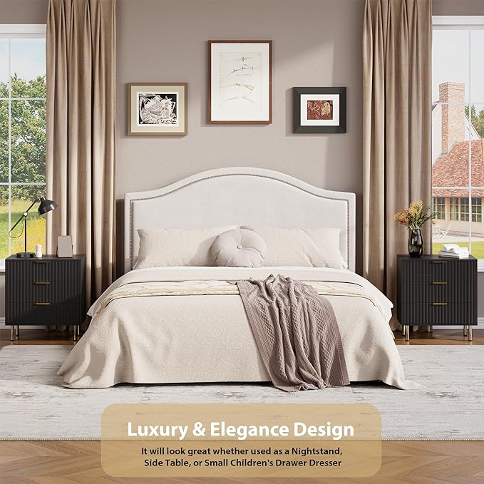 3 Drawer Dresser for Bedroom, Fluted Modern Nightstand with Deep Drawers, Chest of Drawers with Wide Top, Wooden Dresser Organizer, Side Table for Living Room, Hallway, Kids Room, Black