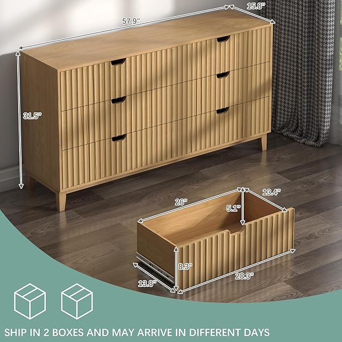 - Two Boxes---This 6 drawer double dresser will come in 2 boxes. It is designed for simple construction, includes all tools, numberes parts, and detailed instructions. We recommend assembly with two individuals and the use of an electric screwdriver for efficiency. Should you encounter any issues with our bedroom dressers, our customer service is readily available to provide prompt assistance and resolve any concerns.