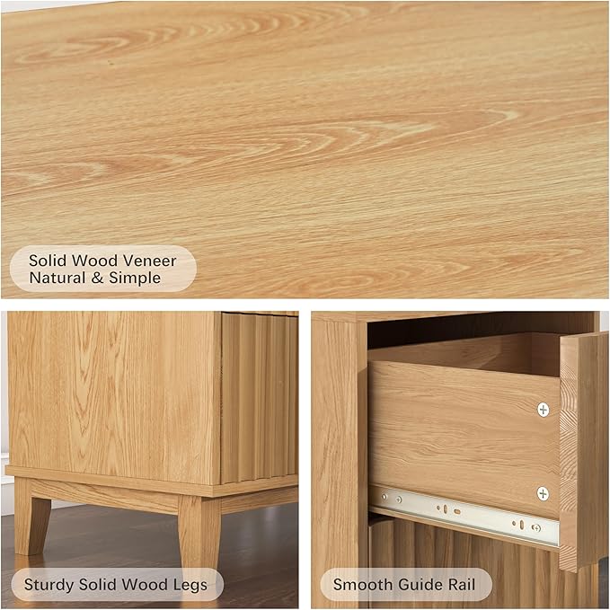 - Farmhouse Drawer Dressers---With its natural wood veneer finish, fluted designed drawer panel with superior craftsmanship, and minimalist structure, this piece exudes a charming farmhouse style, which blends easily with a range of decor styles, including mid-century, modern, rustic, and traditional, adding a touch of aesthetic appeal to your home.