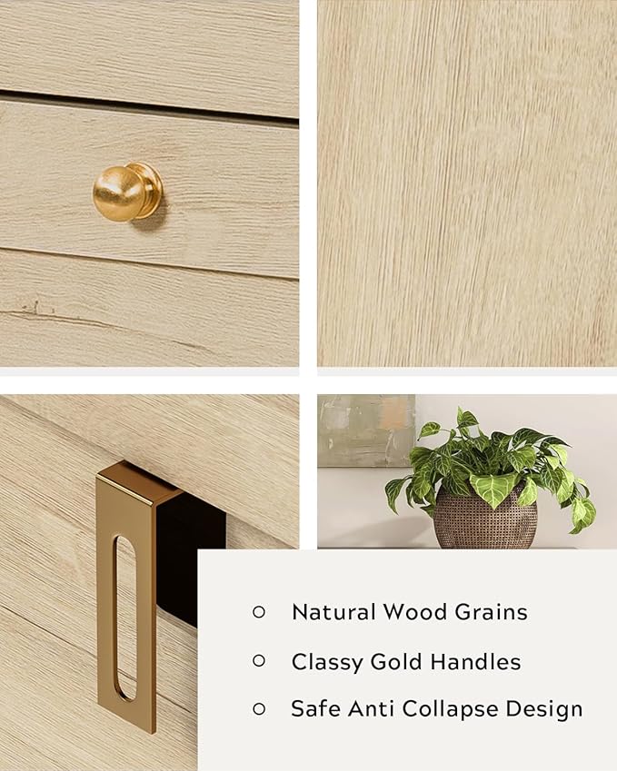 - 【Dependable And Durable】Crafted with high quality materials, enhancing both structural stability and durability. Anti-dumping device links the wood dresser with the wall to prevent tip-over incidents and more safety when kids open the drawer. Featuring smooth metal rails, the drawers offer effortless access to your stored items
