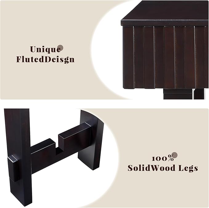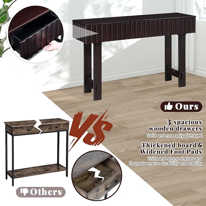 52" Console Table, Solid Wood Fluted Sofa Table Behind The Couch, Mid Century Farmhouse Entryway Table with 3 Drawers for Entrance, Hallway, Living Room, Foyer (Espresso)