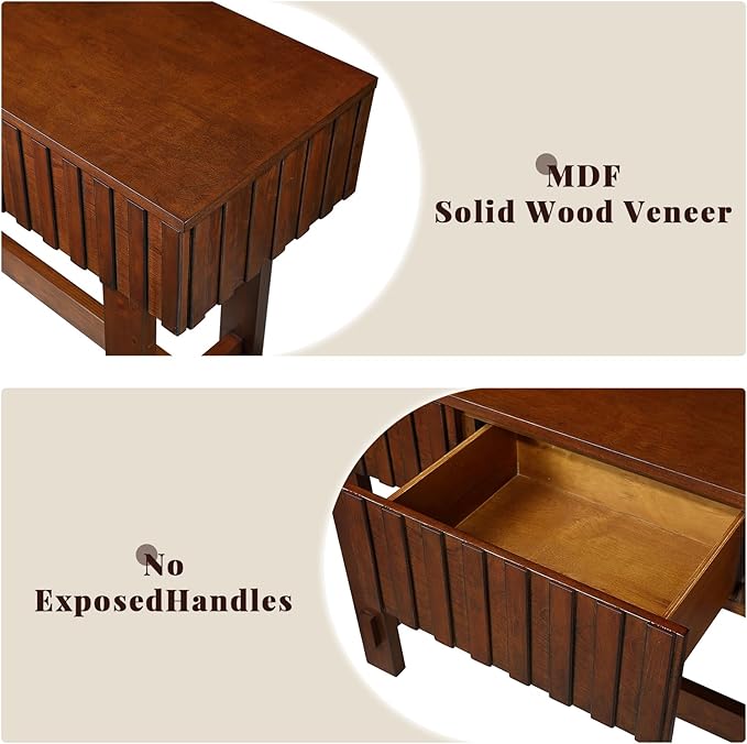 - Fluted Design: The console has a charming farmhouse-style decor.3 drawers feature a distinctive, piano-like fluted detailing that adds a touch of sophistication and visual interest.The combination of a sleek silhouette with these intricate, high-quality drawer fronts creates a harmonious balance between form and function, resulting in a piece that is both a practical storage solution and a statement of refined tas.