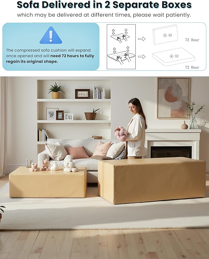 - 【Cozy and Safe Sofa Bed】The queen sofa bed features soft padding, along with included pillows and cushions for enhanced safety and comfort. Its enclosed design ensures a relaxing, supportive environment whether sitting, lounging, or sleeping. (Note: Sofa bed comes in two boxes and may arrive at different times)