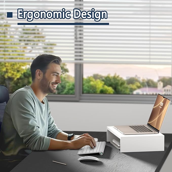- 【Prefect Office Partner】These 3 classic white stand can meet your 3 needs one time: ★Raise 3 monitors/laptops/printers/game boxs ★Relieve fatigue ★Increase storage space.