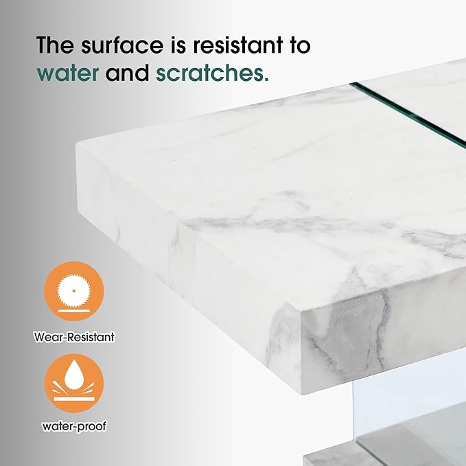 - Sturdy 8mm Tempered Glass and MDF Board: Crafted with premium 8mm tempered glass and rustic wood grain finish, the surface can resist water and scratches.The console table supports up to 110 pounds