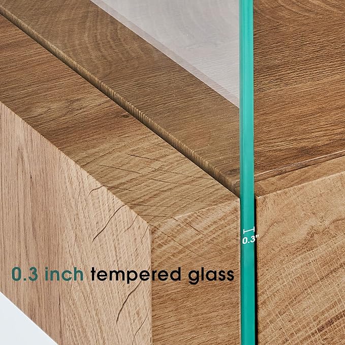 - Sturdy 8mm Tempered Glass and MDF Board: Crafted with premium 8mm tempered glass and rustic wood grain finish, the surface can resist water and scratches.The console table supports up to 110 pounds