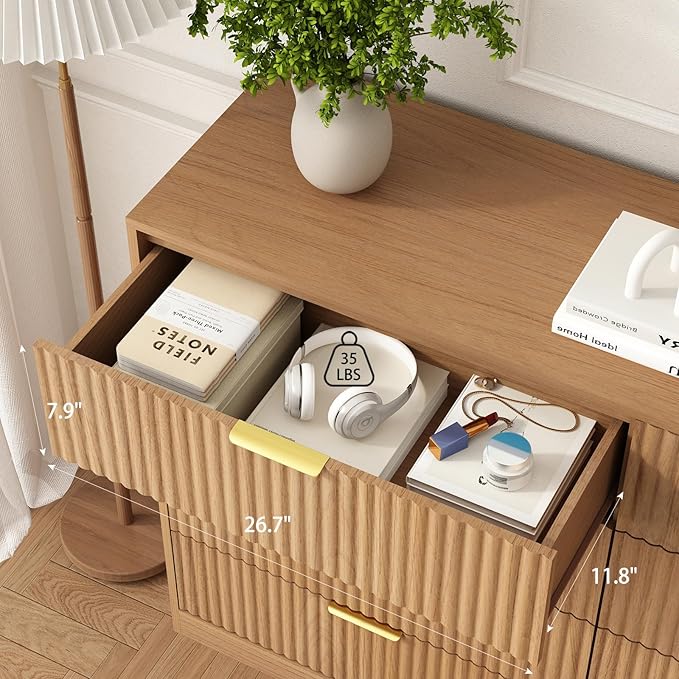 - Ample Storage Space: With 8 deep drawers, this fluted dresser provides generous storage capacity for organizing and storing clothing, books, accessories, and personal items, helping you maintain a tidy living space. The wide wooden tabletop of the double dresser can also serve as a TV stand or a display area for your favorite decor items.