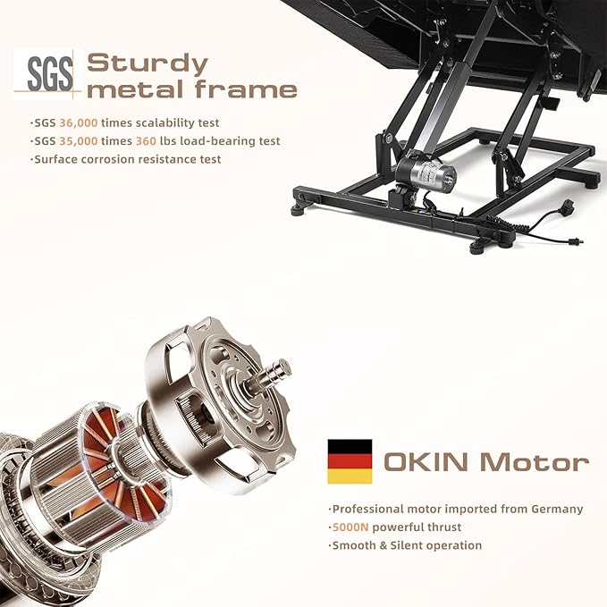 - 【Adjustable to Any Position】Power Lift Recliner Adjust to Any Angle You Need(45°-165°), Our lift chairs are equipped with a lift remote control, which Avoids the issue of not being able to reach the lift button on the armrest when lying down. Additionally, Based on SGS testing, Button replacing the remote control resulted in a 72% decrease in chair malfunction rates.