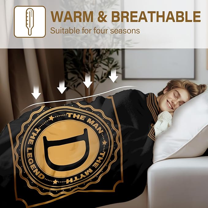 Happy Birthday Gifts for Man, Men Birthday Gift for Dad, Birthday Blanket for Men, Throw Blanket for Him Dad Grandpa Uncle, Creative Gifts for Fathers Day Initial Letter D Blanket 50"x60"