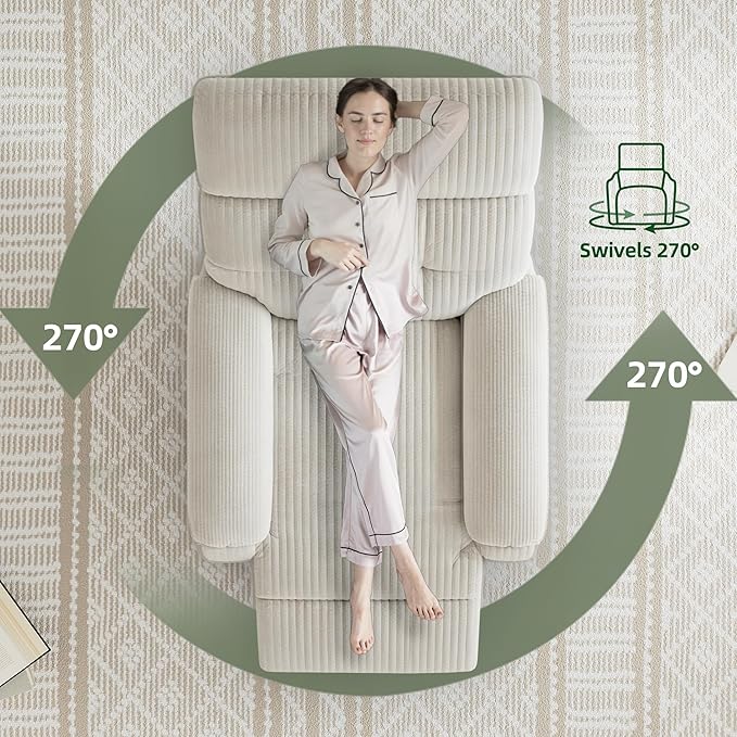 - Versatile Swivel Recliner: This recliner offers a 270-degree swivel base for easy rotation and electric angle adjustment with infinite positions. The 90-160 degree recline suits various postures, including sitting, reading, watching TV, or lying down to rest.