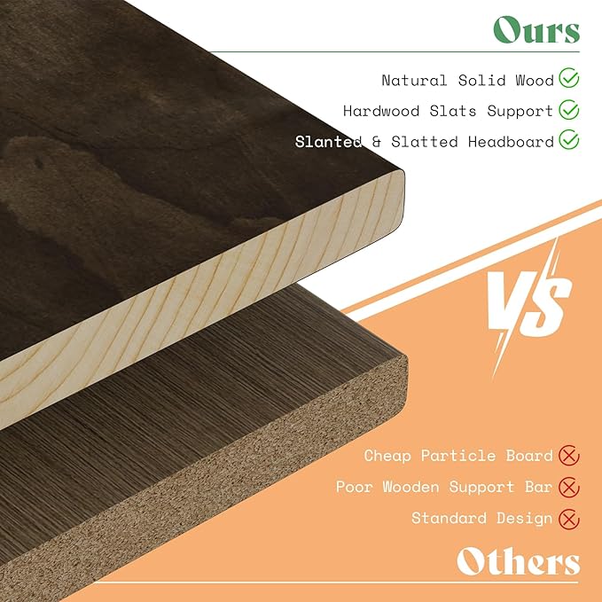 - Silent Slats & Sound Sleep: This wooden bed frame with silent cotton eliminates annoying squeaks for sleep. Enjoy undisturbed sleep experience.