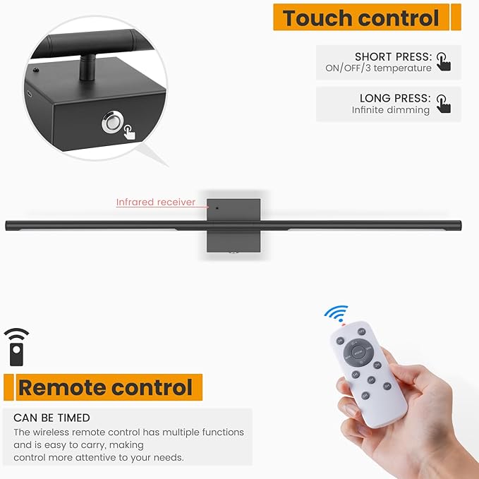 - 【Remote & Touch Control】Enjoy versatile control options with this rechargeable wall sconce, featuring both remote and touch functions. Use the remote to turn the light on/off, adjust brightness, set a timer for 1-8 hours, or switch color temperatures from a distance, or simply tap the button on the fixture for quick adjustments.