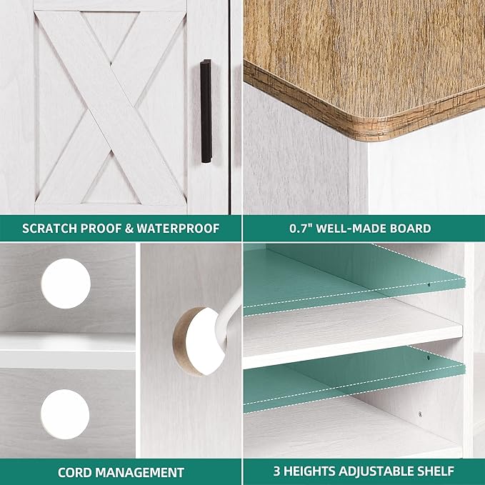 - Modern farmhouse style & fit for 55/50 inch TV: The farmhouse TV stand features a blend of modern and farmhouse. It is made from well-done engineered wood. The rustic alloy metal delivers a naturally aged feel and creates a cozy and retro vibe. This 3-tier entertainment stand accommodates flat screen TVs up to 55/50/48 inches