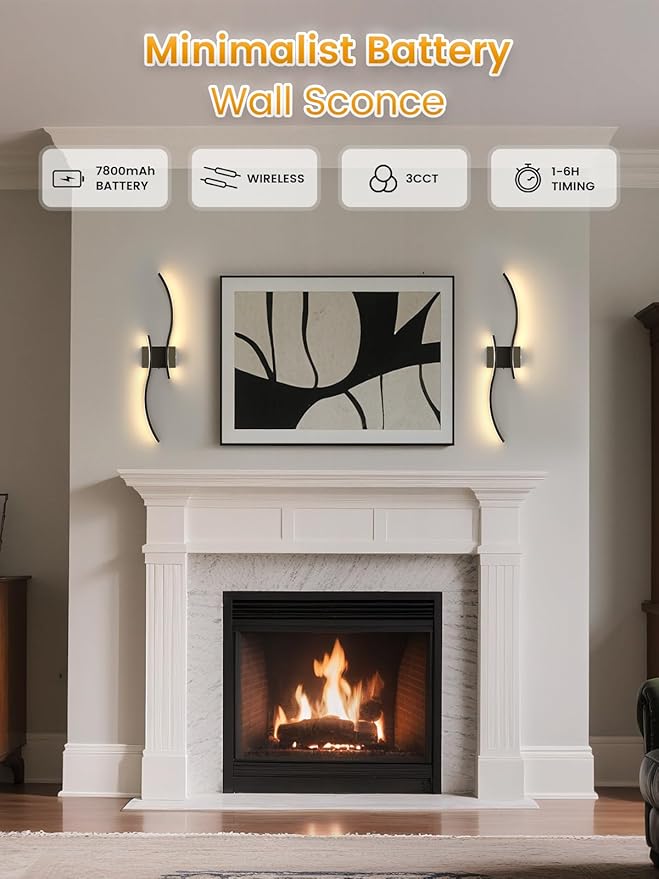 - 【Wireless & Easy to Install】 With a modern minimalist design, this wall sconces set of two is perfect for anyone avoiding complex wiring. The cordless setup allows for quick installation anywhere you need light, such as bedside, in hallways, or in reading corners.