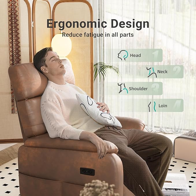 - Ergonomic Design: The power recliner chair features a padded back, headrest, and 7.1 inch thick sponge seat cushion, offering exceptional comfort and support. Additionally, the waist pillow filled with down cotton enhances lumbar support for improved posture and relaxation.