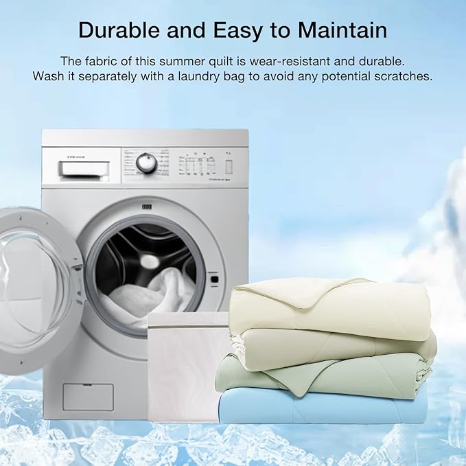 - 【Durable and Easy to Maintain】The fabric of this summer quilt is wear-resistant and durable. Wash it separately with a laundry bag to avoid any potential scratches. Do not bleach or iron the blanket, and hang dry instead of tumble drying to prevent damage to the cooling fiber.