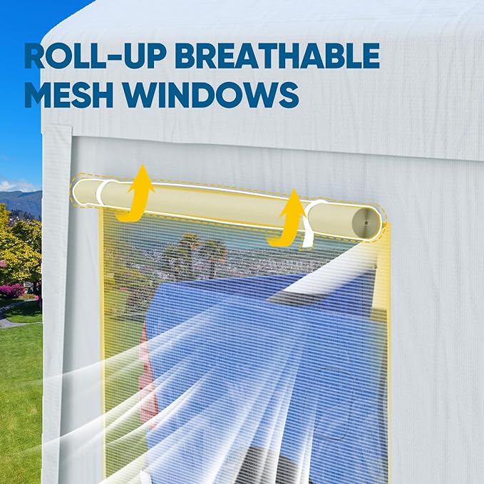 - 【Roll-up Ventilated Windows】The sidewall of this 10x20ft car port have Mesh Windows & Window Covers, which can be used at any time according to the seasonal climate, keep the summer ventilated and warm in winter, create a perfect space for your car at anytime