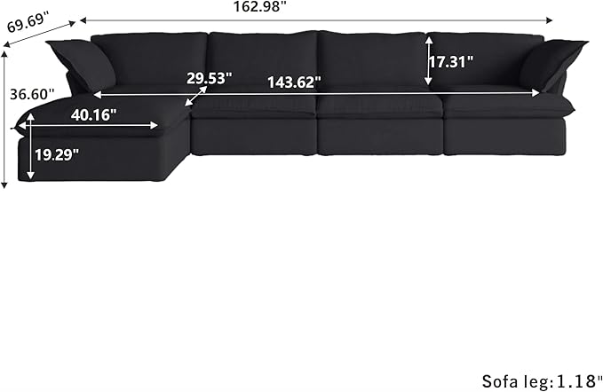 - ⛅[Size Information] Overall Size: 162.98"L x 69.9"W x 36.6"H. Sofa type: sectional couch sofa; modular sectional; modern sofa; velvet sofa;sofa sectionals for living room; living room couch; cloud couch dupes; comfy couch;modern couch.This cloud sofa can add more comfort to your living room.