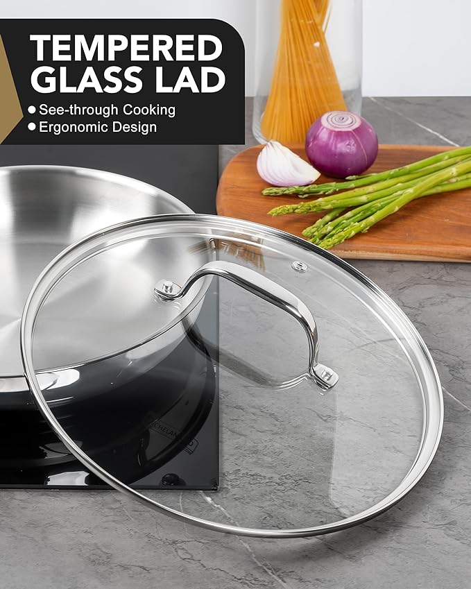- From Searing to Simmering in One Set – The 8 inch stainless steel pan handles quick tasks, while the 10 inch frying pan with lid excels at braising, steaming, and saucy dishes.