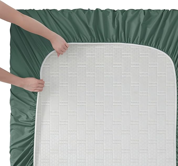 Clara Clark Bed Sheets, Premier 1800 Series Bed Sheet Set, Deep Pocket, Wrinkle, Fade, Stain Resistant, Luxury Soft Bedding Sheets & Pillowcases, Full, Forest Green