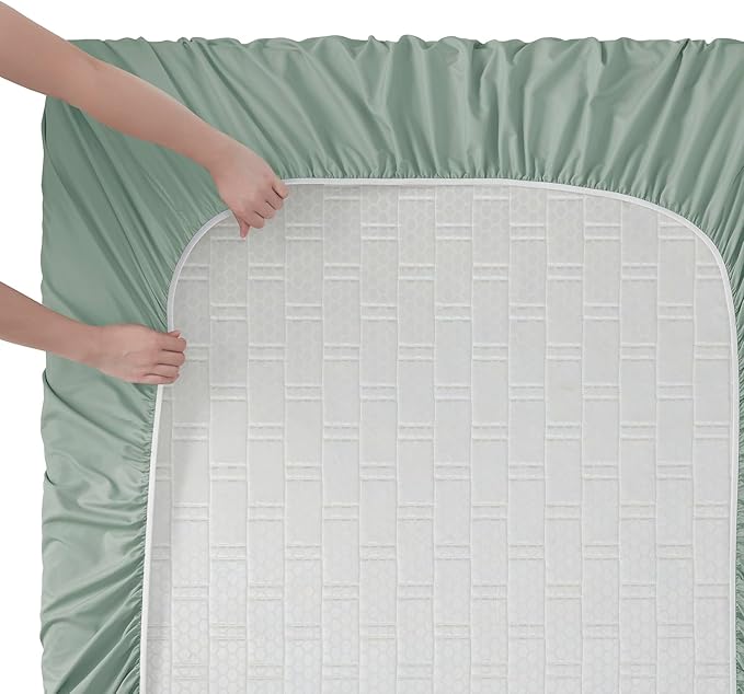 Clara Clark Bed Sheets, Premier 1800 Series Bed Sheet Set, Deep Pocket, Wrinkle, Fade, Stain Resistant, Luxury Soft Bedding Sheets & Pillowcases, California King, Ice Green