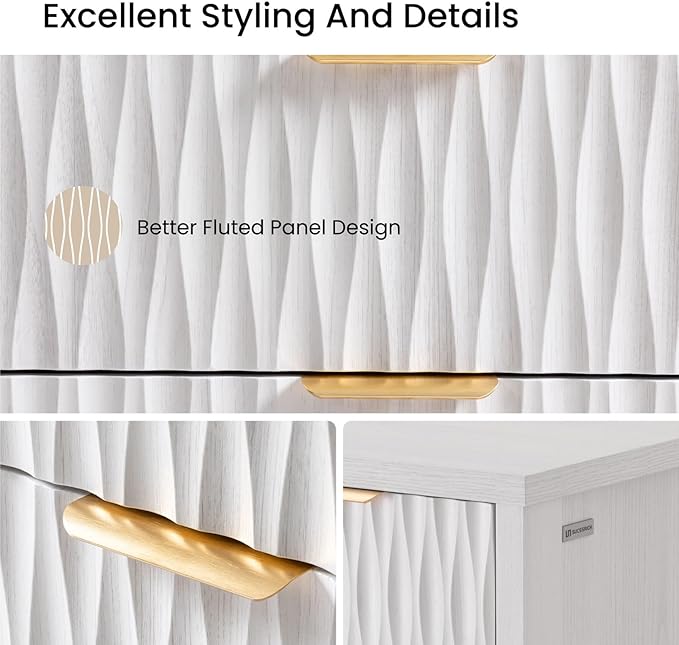 - 【Modern Chic Appearance】The unique wave-like fluted panel enhances the texture and elegance of this bedroom dresser, adding a touch of sophistication to your room. Its elegant metal handles harmonize with the fluted design, complementing any decor style. This dresser is ideal for your bedroom, living room, or hallway.