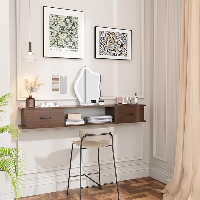 - Sleek, Wall-Mounted Floating Design for Modern Spaces:Transform your living room with this stylish floating media shelf that creates a clean, minimalist look. The wall-mounted design not only adds a contemporary touch but also frees up valuable floor space, giving your room a more spacious and airy feel. Plus, it makes cleaning under the stand a breeze—no more dust bunnies hiding beneath!