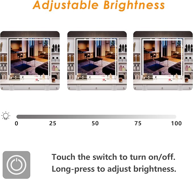 - ✅【Makeup Vanity with Brilliant Illumination】The large mirror offers advanced illumination with infinite dimming for customizable lighting, ensuring optimal lighting for your beauty routines and achieve a flawless look.