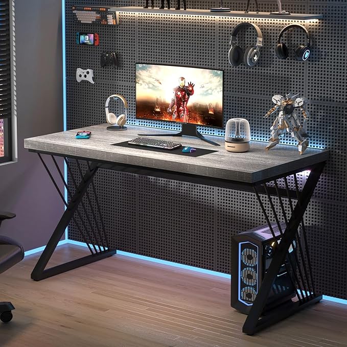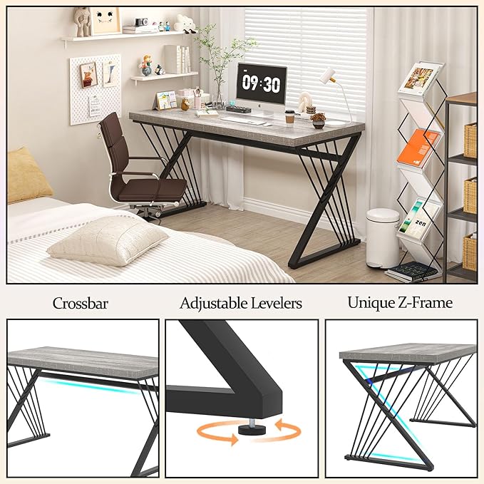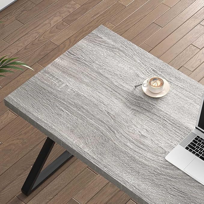 - Modern Industrial Desk: This computer desk combines a light grey wood grain surface with a black powder-coated metal frame, offering a simple, minimalist style. Its Z-shaped design adds a unique, modern touch to any home office, living room, or bedroom