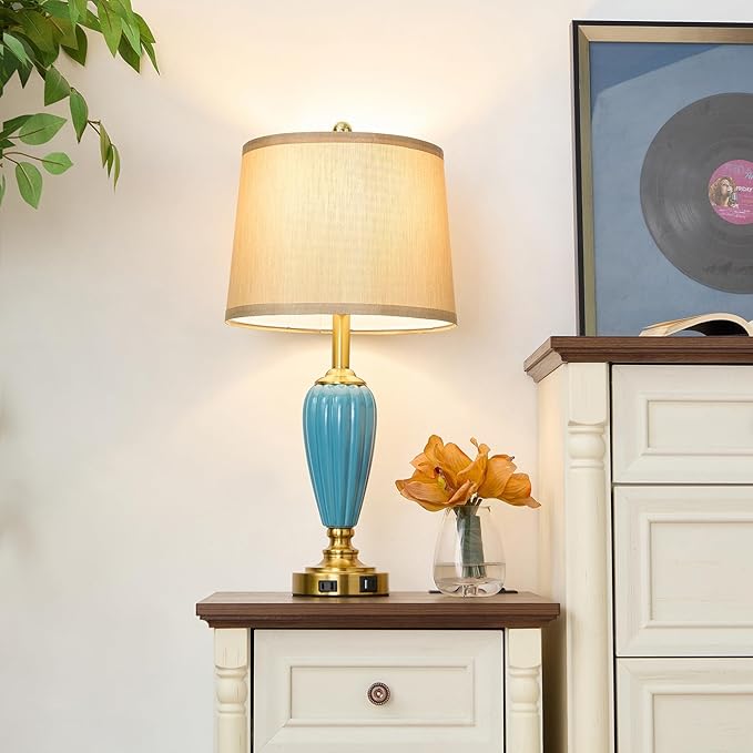 - STYLISH CERAMIC FARMHOUSE DESIGN (SET OF 2): Elevate your bedroom, living room, or office with these premium ceramic lamps. Featuring beautifully carved details and crisp linen shades, they blend classic farmhouse charm with modern elegance for a sophisticated look.
