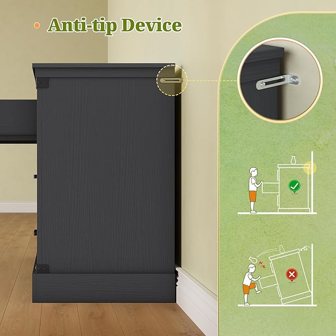 - 【To Serve You Better】Your farmhouse black dresser will be safely packed in a box with protective foam to ensure maximum protection against shipping damage. It require self-assembly, and the package contains detailed instructions and accessories, tools, and all parts are labeled one by one. If you have any questions or concerns about our products before or after purchase, please feel free to contact us, we are always at your service.