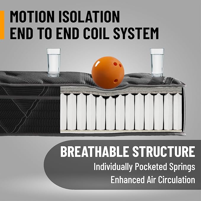 - [Edge-to-Edge Pocket Coil System for Maximum Sleeping Area]: Designed with coils extending across the entire mattress, providing even weight distribution and a larger usable sleep surface, though edges may feel slightly softer.