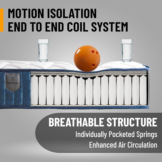 - [Edge-to-Edge Pocket Coils for Maximum Sleeping Area]: Designed with coils extending across the entire mattress, allowing for more usable sleep space, though edges are slightly less firm.