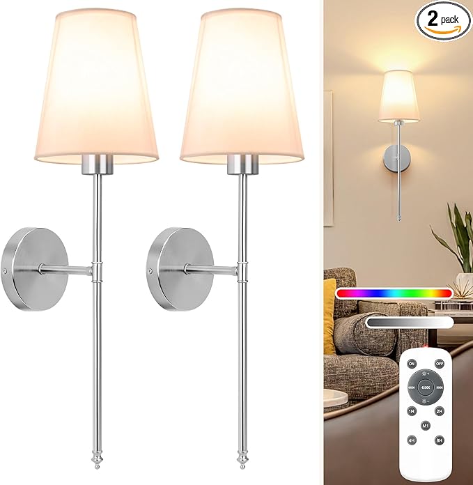 - 【Remote Control & Easy operations】Wireless sconces set of 2 take full control of your lighting experience with the included remote. Easily customize brightness levels and light effects from the comfort of your couch or bed. With just a press of a button, you can create the perfect ambiance for any occasion, whether it's movie night or a cozy evening at home.