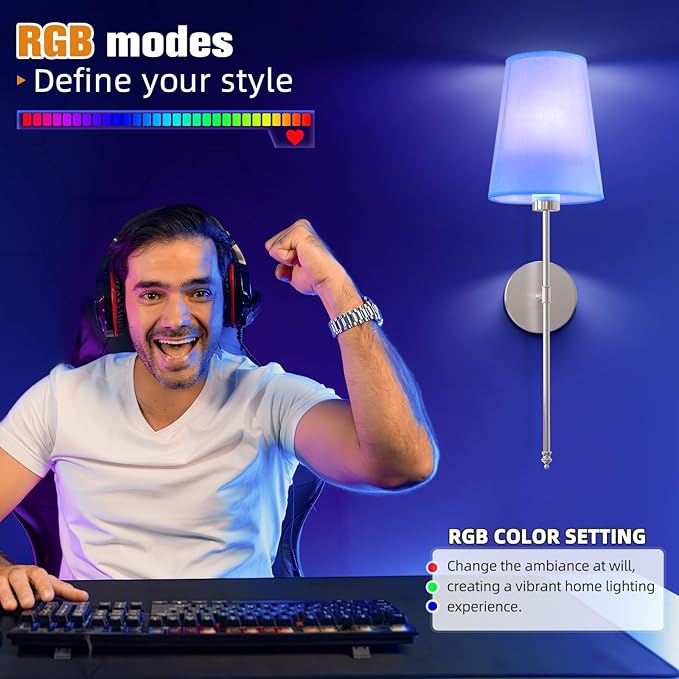 - 【Dimmable & Color Customized】Customize your lighting experience with adjustable color temperatures ranging from 3000K to 6500K and five levels of brightness (20%-100%),as well as 9 RGB colors.Whether you need warm, cozy lighting or bright, energizing illumination, our sconces wall decor set of 2 offer a comprehensive range of lighting options.