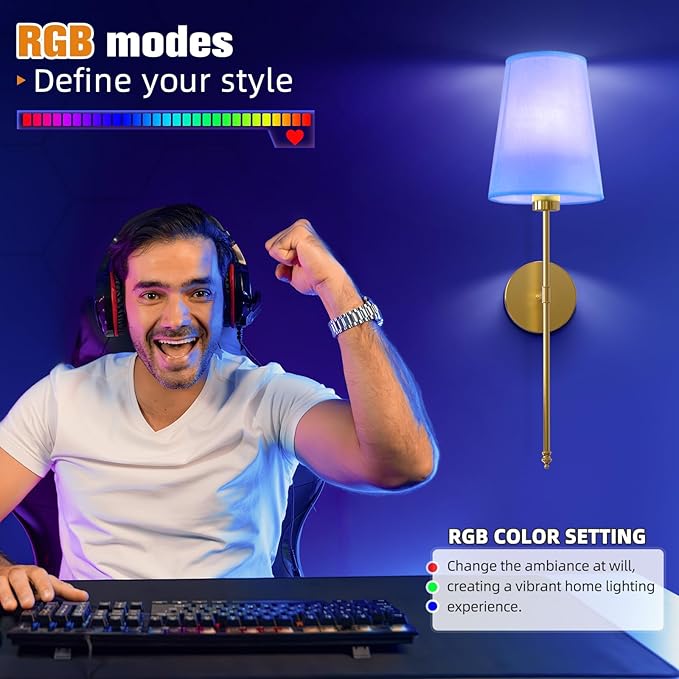 - 【Dimmable & Color Customized】Customize your lighting experience with adjustable color temperatures ranging from 3000K to 6500K and five levels of brightness (20%-100%),as well as 9 RGB colors.Whether you need warm, cozy lighting or bright, energizing illumination, our sconces wall decor set of 2 offer a comprehensive range of lighting options.