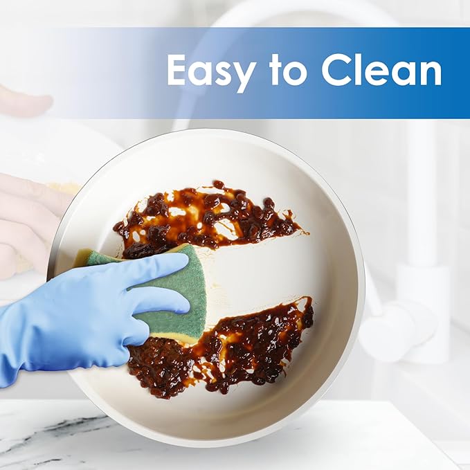 - Easy to Clean: Double sided ceramic nonstick cookware set make cleaning easy, A quick rinse or wipe will easily remove any residue, keeping your cookware spotless and in perfect condition effortlessly