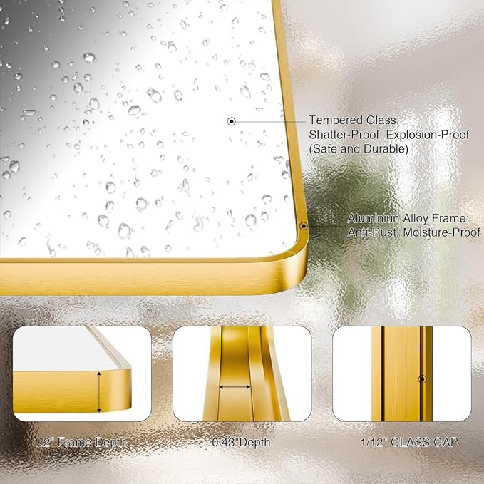 - 🌟【Excellent Quality-Mirrors For Bathroom Sink】:Bathroom mirrors made of rustproof coating and aluminium alloy frame can ensure waterproof and corrosion resistant in humid bathroom environment, durable, save your money, bathroom mirrors packed with all-around protection of Styrofoam, passed the international drop test.