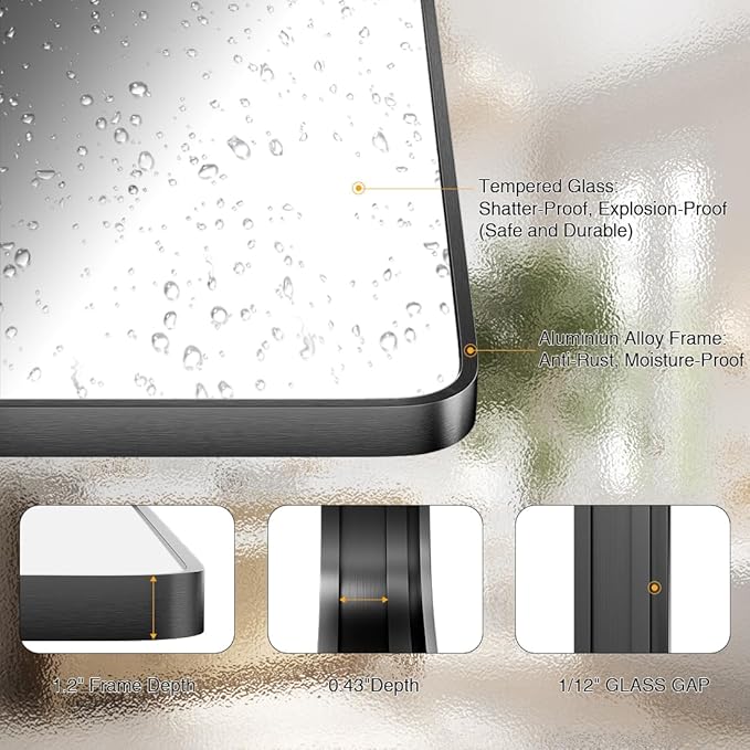 - 🌟[Bathroom Mirrors - Clear And Bright]:Bathroom mirrors 36" X 24" for over sink Made of toughened mirrors, clear and bright, does not leave scratches, 1:1 restore the real image. The mirror surface is made of ultra-strong tempered glass, 5 times stronger than ordinary mirrors, will not break into pieces under strong impact, ensuring your safety.