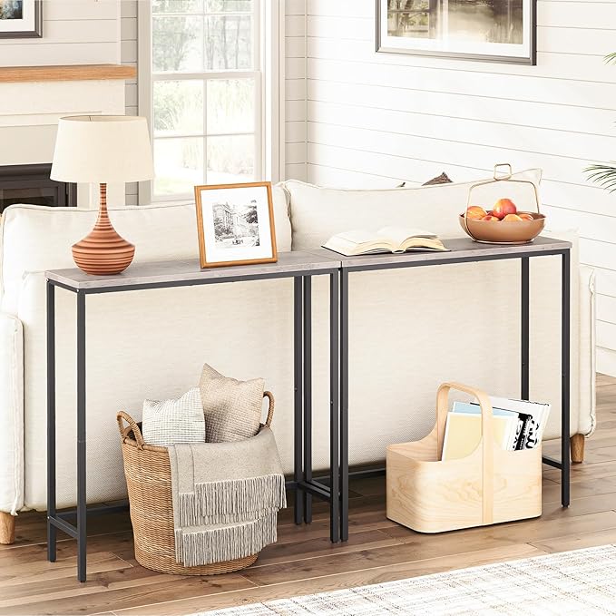 - 2-Piece Narrow Sofa Tables: Each console table with a size of 29.5"L x 9.5"W x 29.5"H is perfect to put behind the sofa, in the kitchen, study, meeting room, entrance and hallway. You can get larger storage space when you put these console tables together